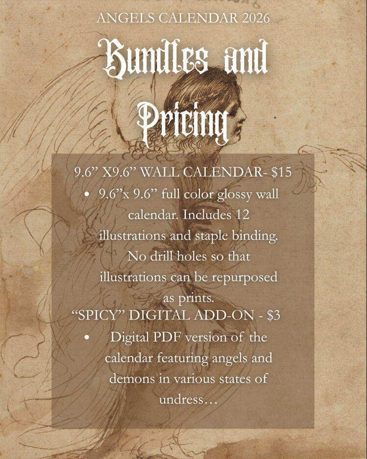 Kaz (@dogboystmicahel) is thrilled to be collaborating with his friends as part of AAC! You may know him from This Could Be Religion Zine or from the naked angels he draws on twitter. Outside of art, he enjoys writing, going to the gym, and spending time with his wife. His favorite angels characters are Lucifer, Michael, and Baal (unfortunately basic.)